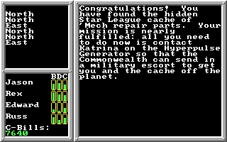 5. Magic and Combat. No magic, of course, but it's a sci-fi game so it doesn't lose any points there. The combat system in BattleTech is fairly original and could have been a strong point to the game. The tactical combat grid recalls the best SSI games (Pool of Radiance, Demon's Winter)