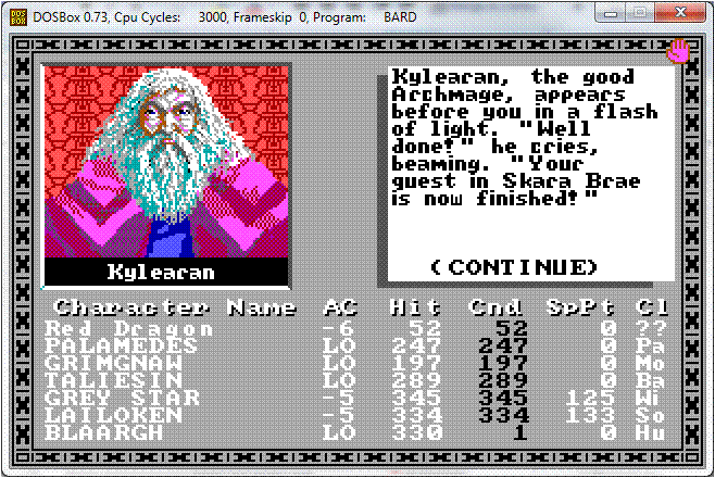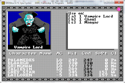 9. Graphics, Sound, Inputs. The graphics are quite good for the era--leaps ahead of Wizardry. Some of them are lightly animated. On the DOS port, there are no sound effects except for the bard songs, which suck a bit. Controls are by keyboard or mouse, and both work fine. Category score: 4.