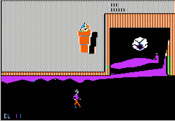 Mr. Phillips had played no previous computer RPG except Wizardry, which I find fascinating, since you really can't detect any influence of Wizardry on Expedition Amazon. Phillips made up most of the elements himself. He said he made the back story "silly" simply because he didn't expect anyone to publish it. After Pelczarski picked it up, David ("Dr. Cat") Shapiro helped de-bug the source code and Greg ("Moebius") Malone designed the cover. The old man in Iquitos telling jokes was added by Pelczarski and Shapiro, which makes sense. As an anonymous commenter pointed out, the graphic seems very foreign to the game--clearly not the same style as Phillips's other illustrations.